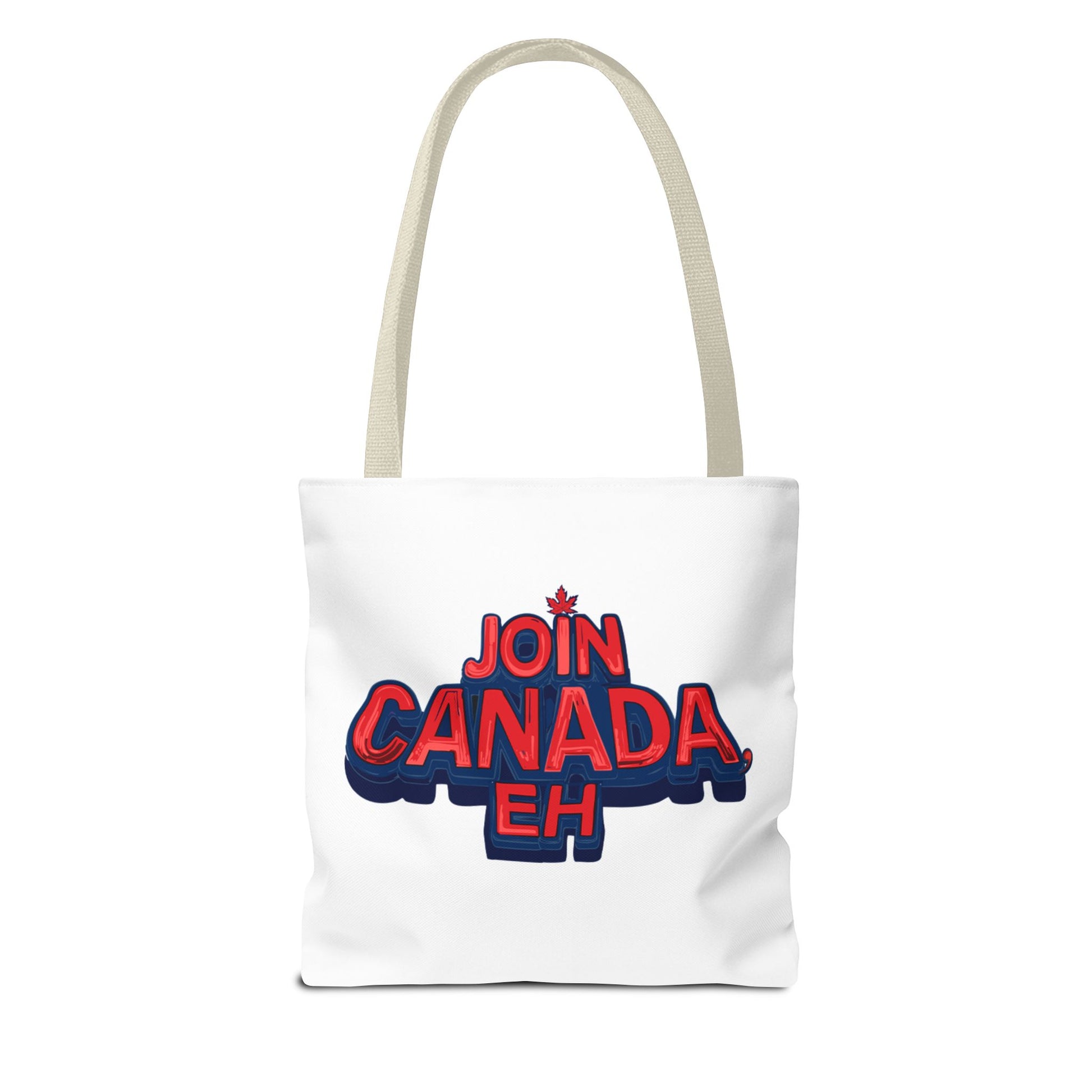 Introducing the perfect Tote Bag for those who love to express their cultural pride! With a vibrant design that features catchy phrases like "JUST SAY EH" and "JOIN CANADA EH", this bag brings a cheerful and playful vibe. Ideal for everyday outings, it’s large enough to hold all your essentials while making a fashionable statement. Perfect for students, travelers, or anyone who embraces Canadian culture, this Tote Bag is a must-have for summer festivals, Canada Day celebrations, or simply as a fun accessory for casual outings. It's not just a bag; it’s a conversation starter!